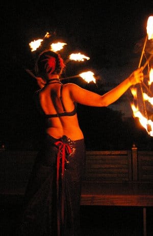 Feuertanzshow (Feuerfächer, Handflammen, Feuerpoi, Feuerschlucken und Körperfeuer)